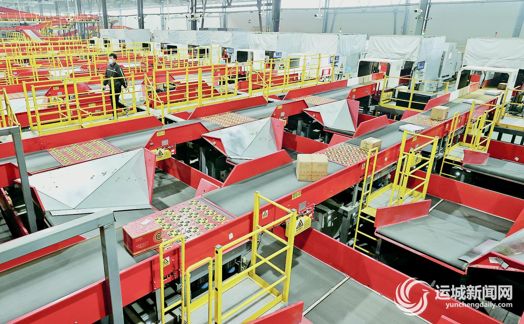 2月10日,順豐物流公司臨猗縣楚侯中轉場的環形全自動分揀系統在分揀小件商品。