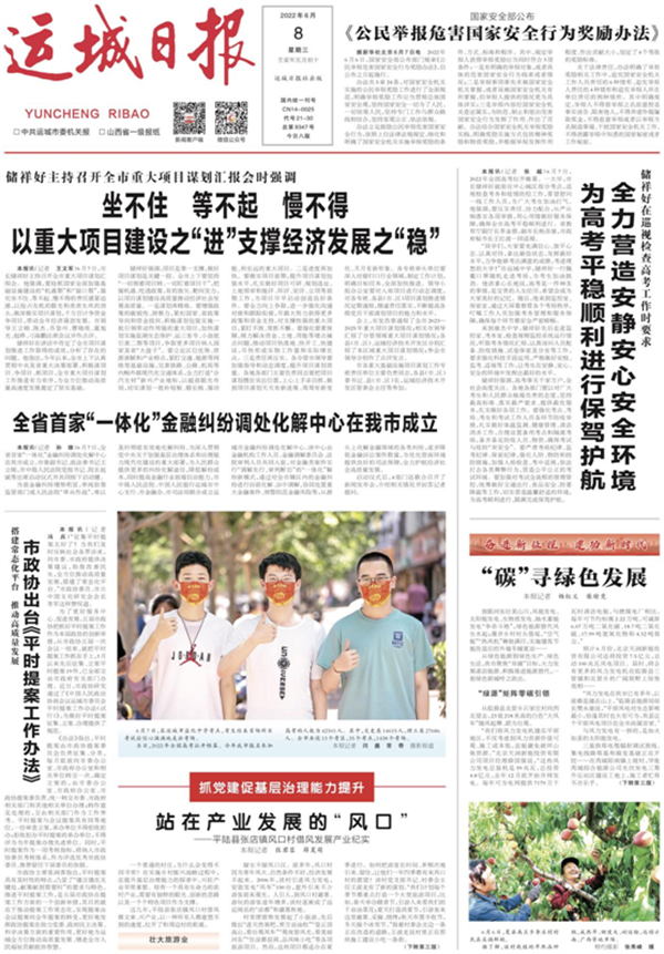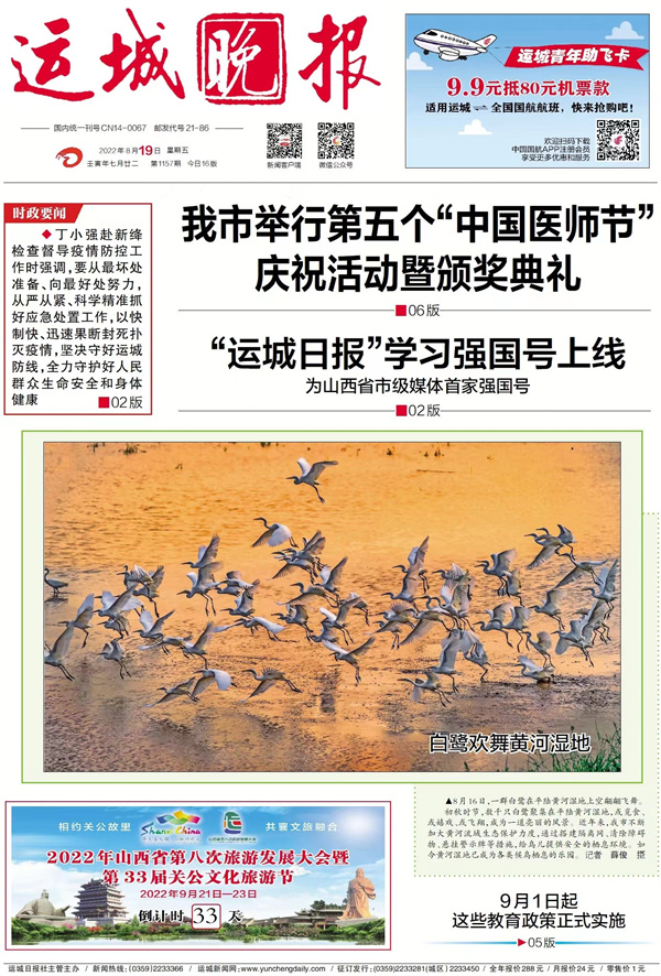 運城日報、運城晚報所有自采新聞(含圖片)獨家授權運城新聞網發布,未經允許不得轉載或鏡像;授權轉載務必注明來源,例:“運城新聞網-運城日報 ”。