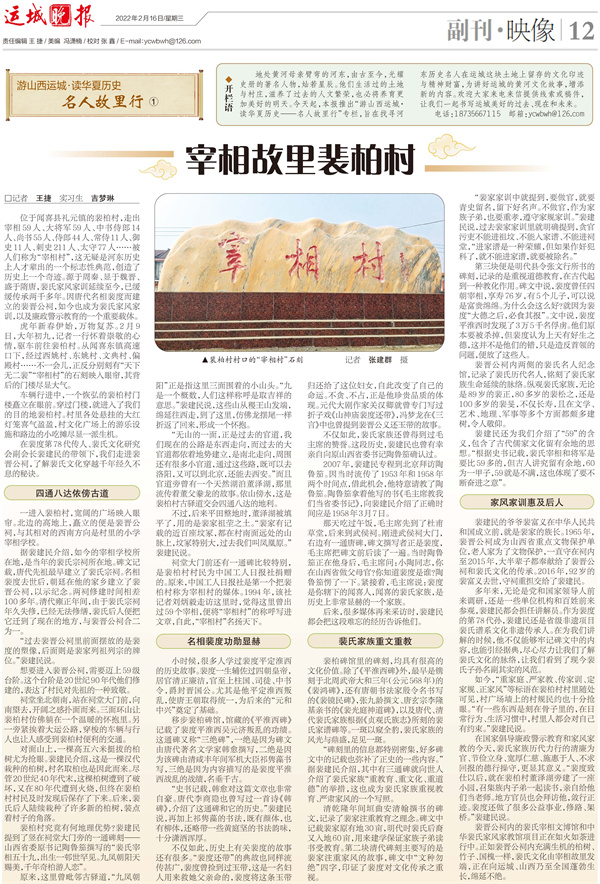 1.作品《宰相故里裴柏村》記者 王捷 實習生 吉夢琳 2022年2月16日 12版