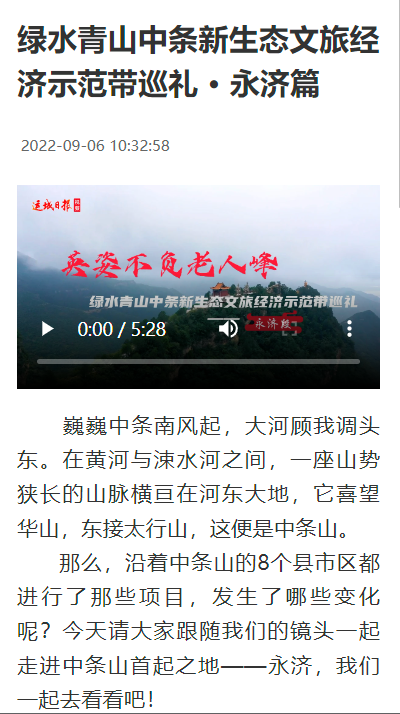 綠水青山中條新生態文旅經濟示范帶巡禮 系列報道