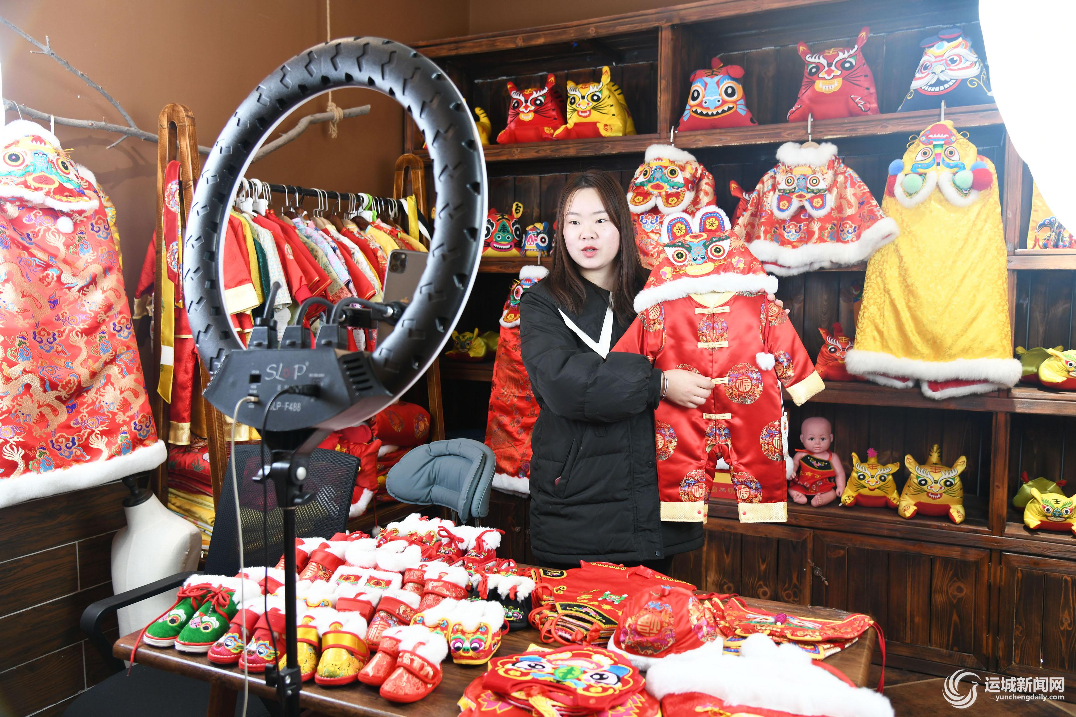 2月12日,聞喜縣小唐人嬰幼兒服飾有限公司工作人員通過(guò)線上直播平臺(tái)推介嬰幼兒服飾產(chǎn)品。