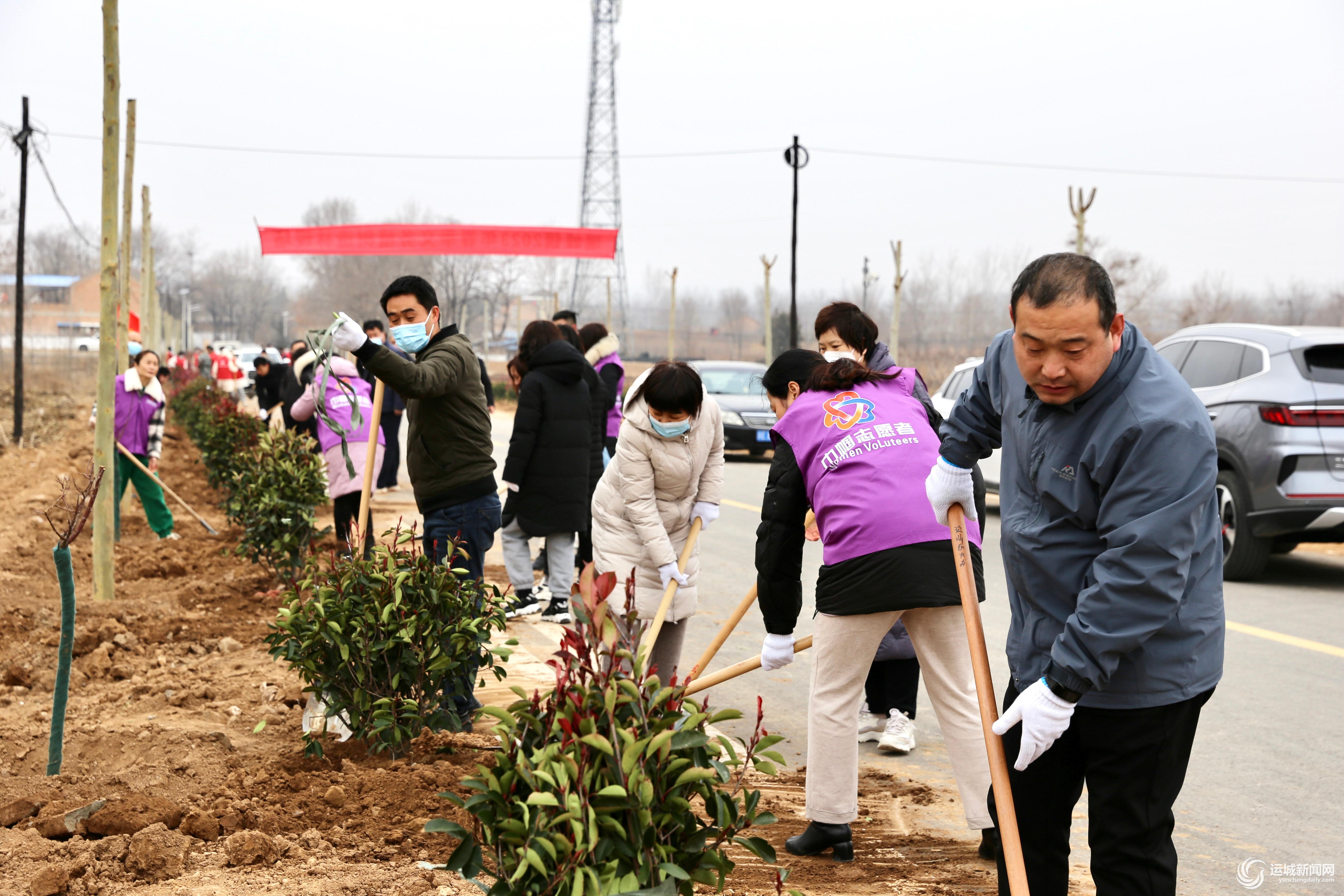 2月10日,夏縣瑤峰鎮各界人士100余人在郭道村開展義務植樹活動。
