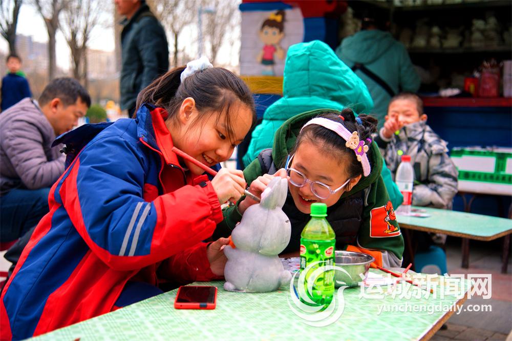 2月18日,在市天逸公園一角,一個個可愛的石膏娃娃,被小朋友們用手中的畫筆添置了“新衣”。