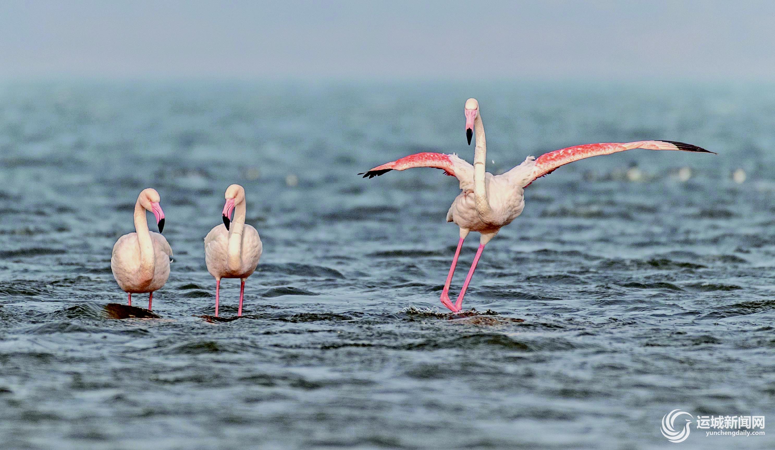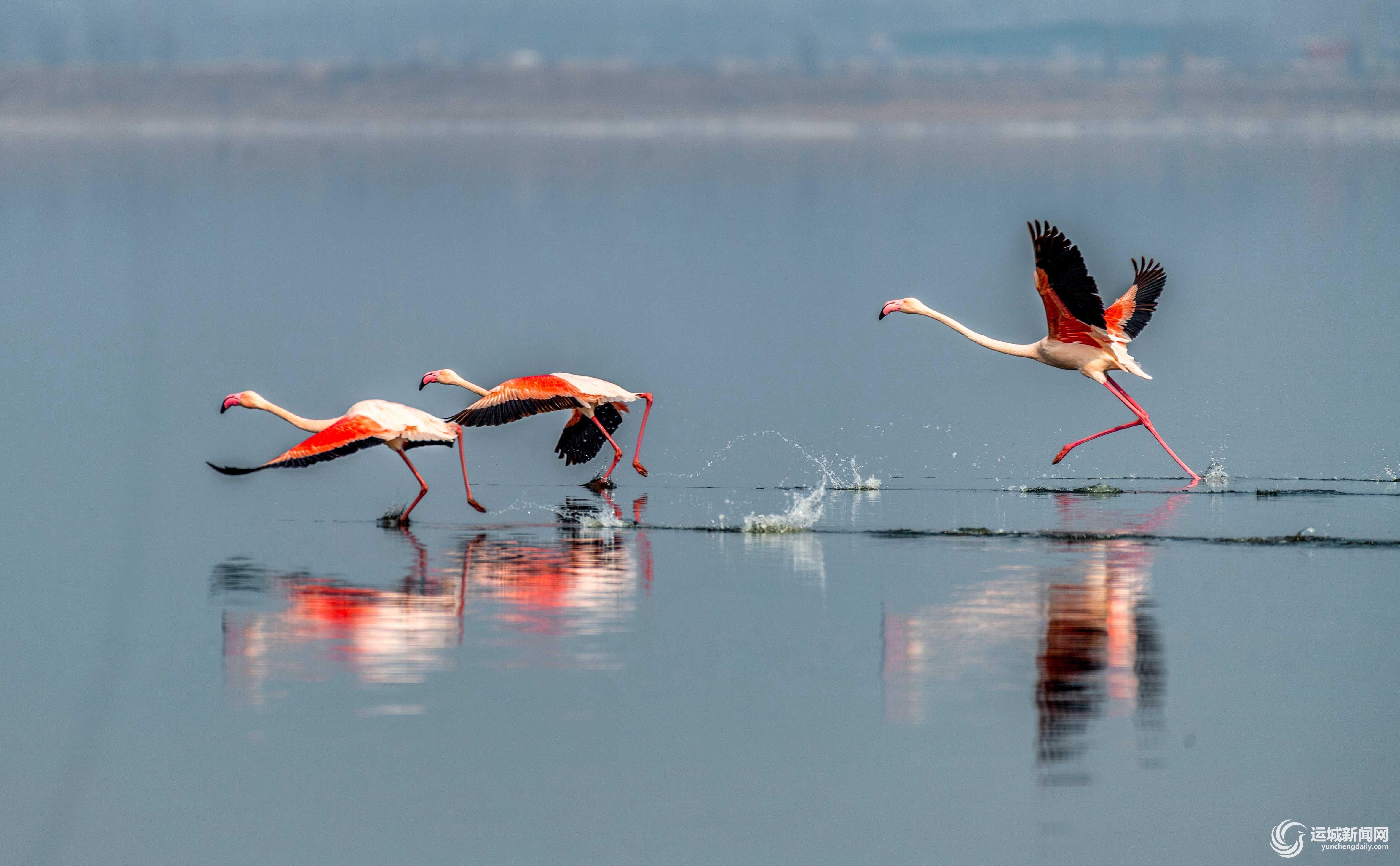 初春時節,棲息在運城鹽湖濕地的火烈鳥,時而覓食、時而嬉戲、時而飛舞,成為春季鹽湖一道亮麗的風景,吸引全國各地的攝影愛好者前來拍攝。 近年來,我市持續加大對鹽湖生態環境的保護力度,鹽湖生態環境持續向好,吸引了各種鳥類來此棲息,鹽湖已成為鳥類的天堂。(記者 薛俊 攝)