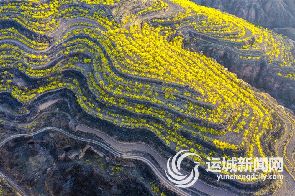 連日來,絳縣南樊鎮沸泉村千畝連翹迎春盛開,漫山遍野披上了“黃金甲”。金黃色的連翹花與綠色的麥苗、白色的杏花相映成趣,美不勝收。