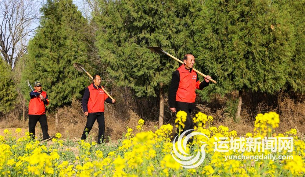 3月14日,夏縣瑤峰鎮(zhèn)郭道村護(hù)林防火檢查點(diǎn)的森林防火監(jiān)督員們,在林區(qū)巡護(hù)。