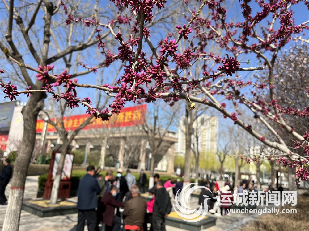 3月13日上午,在市區南風廣場,下棋、鍛煉、看書的市民,和競相開放的紫荊、桃花、壽星桃,共同組成了一幅浪漫和具有濃濃煙火氣的春日美景。