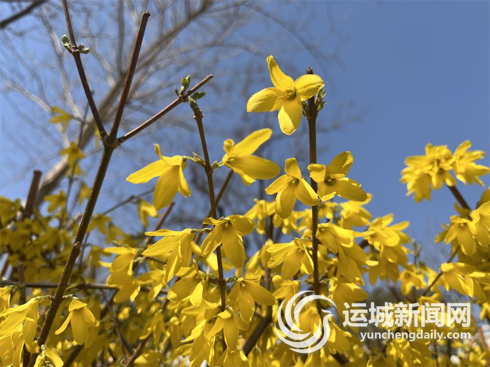 騎車或開車路過市區紅旗東街、河東東街、槐東南路、中銀南路等路段,街道兩側紫葉李、紫荊、二月蘭、連翹逐漸盛開,顏色各異,品種豐富,令人賞心悅目,成為城市中的一道亮麗的風景。