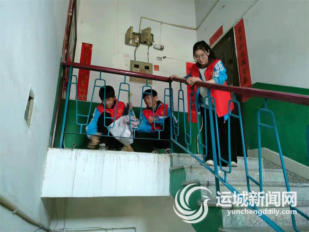 活動中,創新學校代表誦讀了“傳承雷鋒精神·做新時代好少年”倡議書,倡議全體同學從身邊小事做起,把雷鋒精神帶進生活的每一個角落。接著,孩子們唱響歌曲《學習雷鋒好榜樣》。隨后,社區工作人員和孩子們一起打掃小區環境衛生、擦拭樓道欄桿、撿拾綠化帶里的煙頭和塑料袋等雜物(上圖),為營造美麗臨猗貢獻力量。