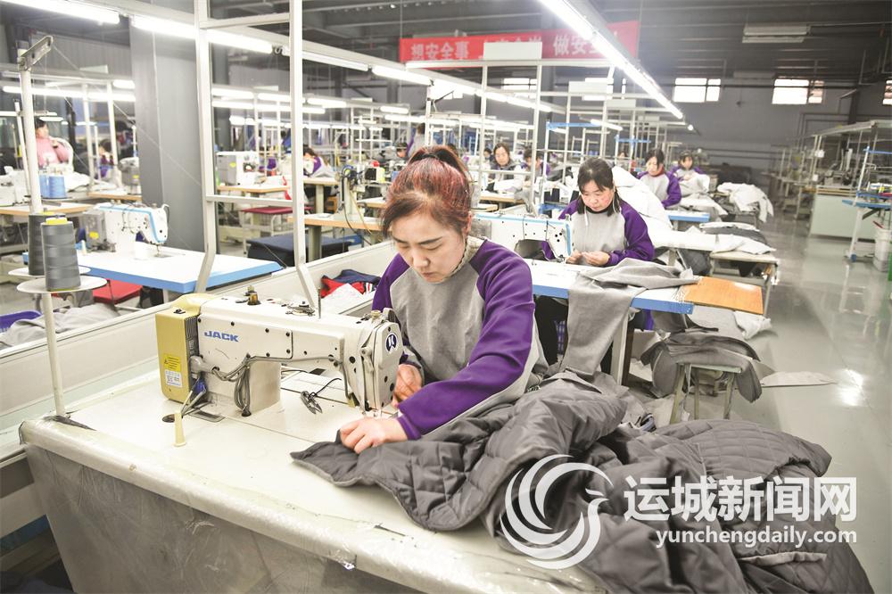 3月21日,在聞喜縣一家服裝企業生產車間,經過定向培訓的農村婦女在生產車間工作。