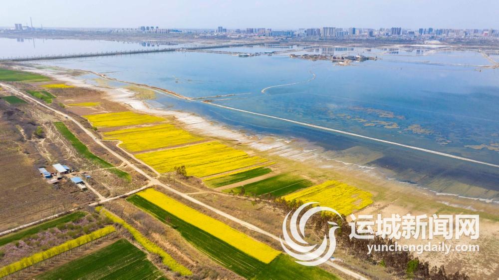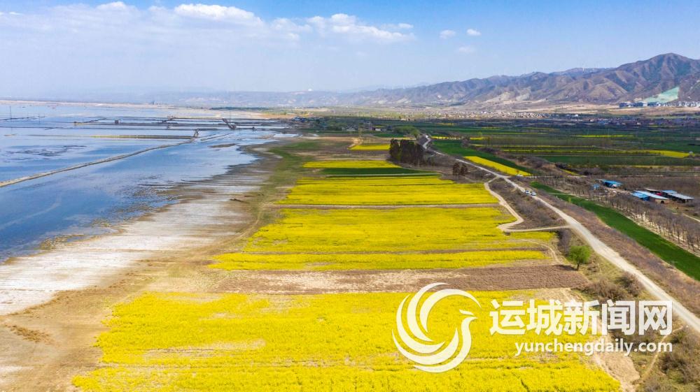 金色的油菜花海、水光瀲滟的鹽池及綠油油的麥田,構成一幅多彩的春日畫卷,吸引游人沉醉花海,盡享生態美景。