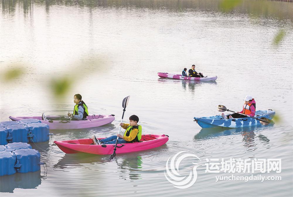 4月8日,游客在鹽湖區(qū)虞坂路附近水域體驗(yàn)皮劃艇運(yùn)動(dòng),樂(lè)享周末時(shí)光。