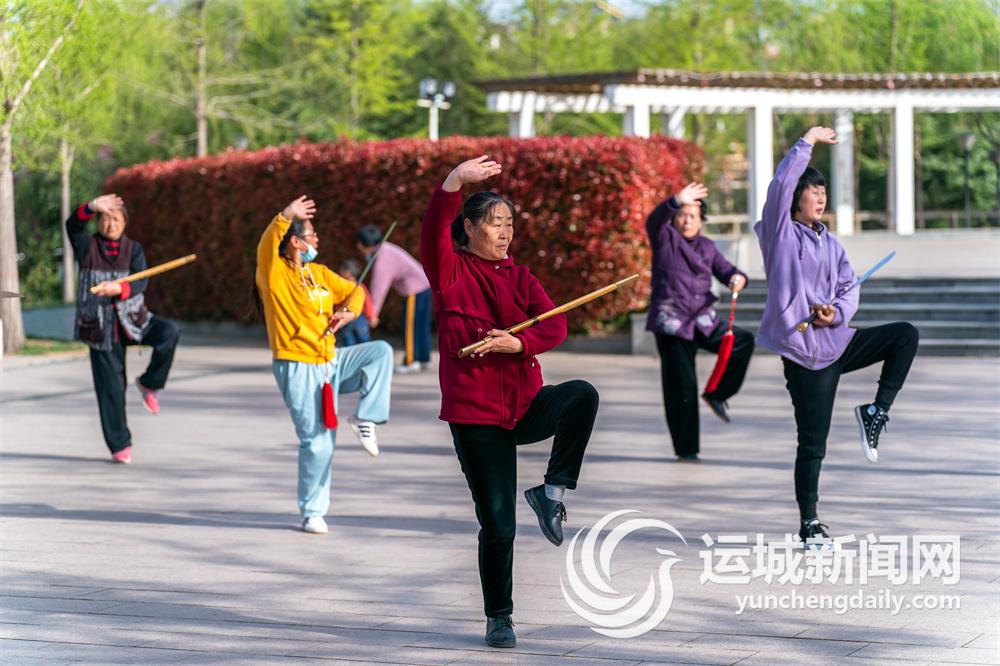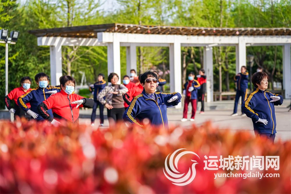 4月10日,萬榮縣人民公園內,群眾在健身。