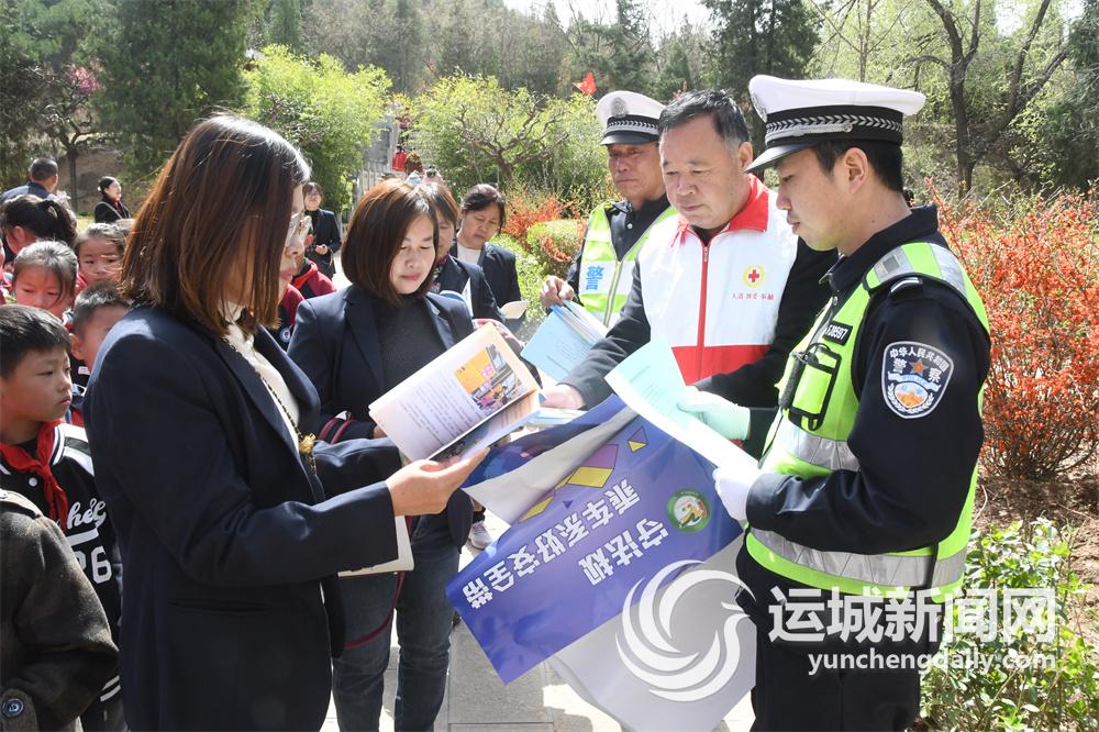 4月11日,夏縣交警大隊組織民輔警來到堆云洞景區,向游客發放交安宣傳材料,并講解交通安全知識,倡導游客遵守交通法規,安全文明出行。
