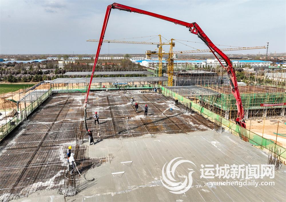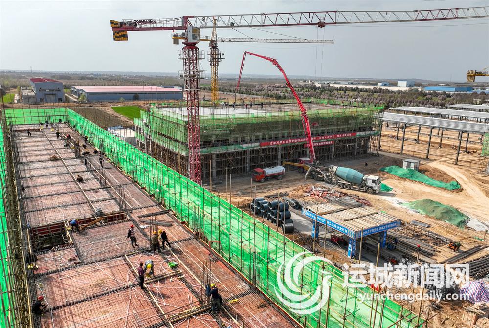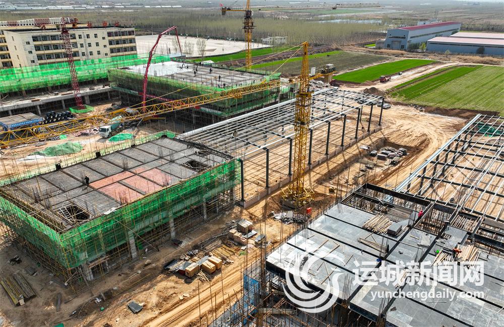 4月9日,在萬榮縣第一高級職業中學產教融合實訓基地項目工地,工人正加緊建設。