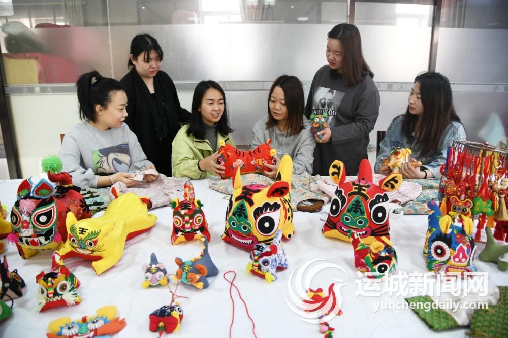 4月23日,在聞喜縣一家嬰幼兒服飾公司生產車間,經過技能培訓的城鄉婦女持證上崗,一起交流布藝工藝。