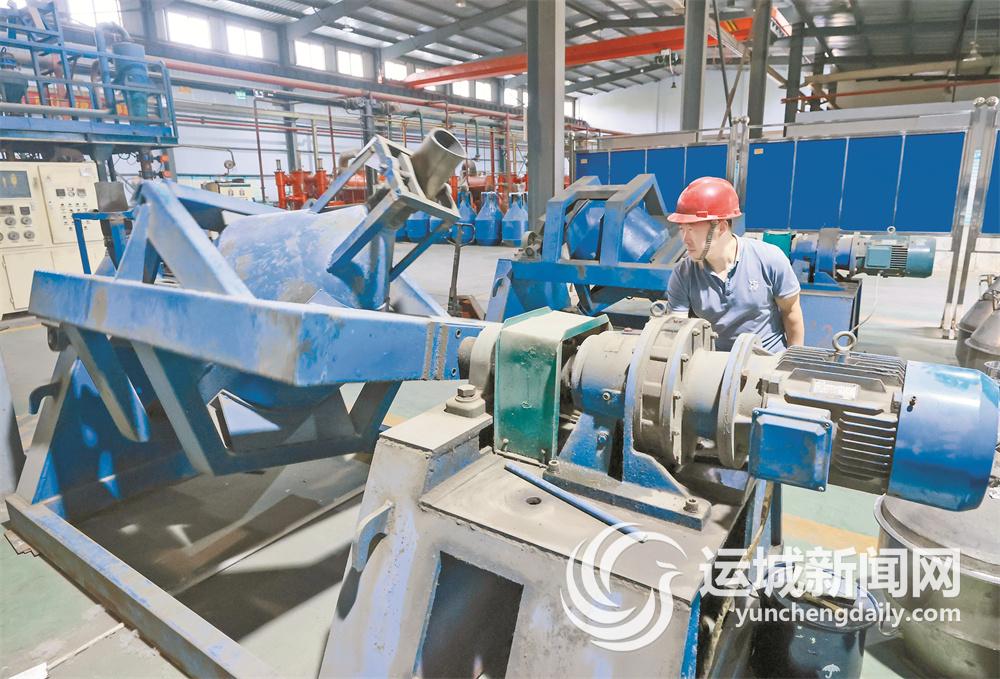 5月10日,在位于運城經濟技術開發區的山西中圣恒磁材料有限公司生產車間內,工人在加工產品。