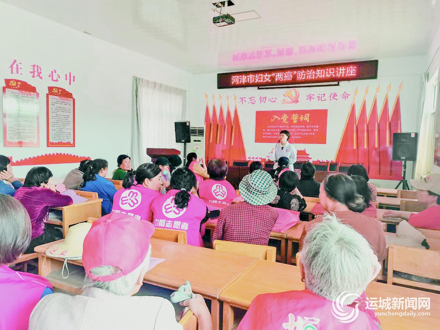 活動中,河津市婦聯工作人員、河津市婦幼保健院醫護人員、河津市城區街道工作人員,通過現場咨詢、免費檢查、發放宣傳資料和倡議書等形式宣傳婦女宮頸癌、乳腺癌的防治知識和篩查的重要性;河津市婦幼保健院專家為村民講解“兩癌”防治知識及婦女權益法律法規。活動共發放“兩癌”倡議書、預防保健手冊等宣傳資料1000余份。