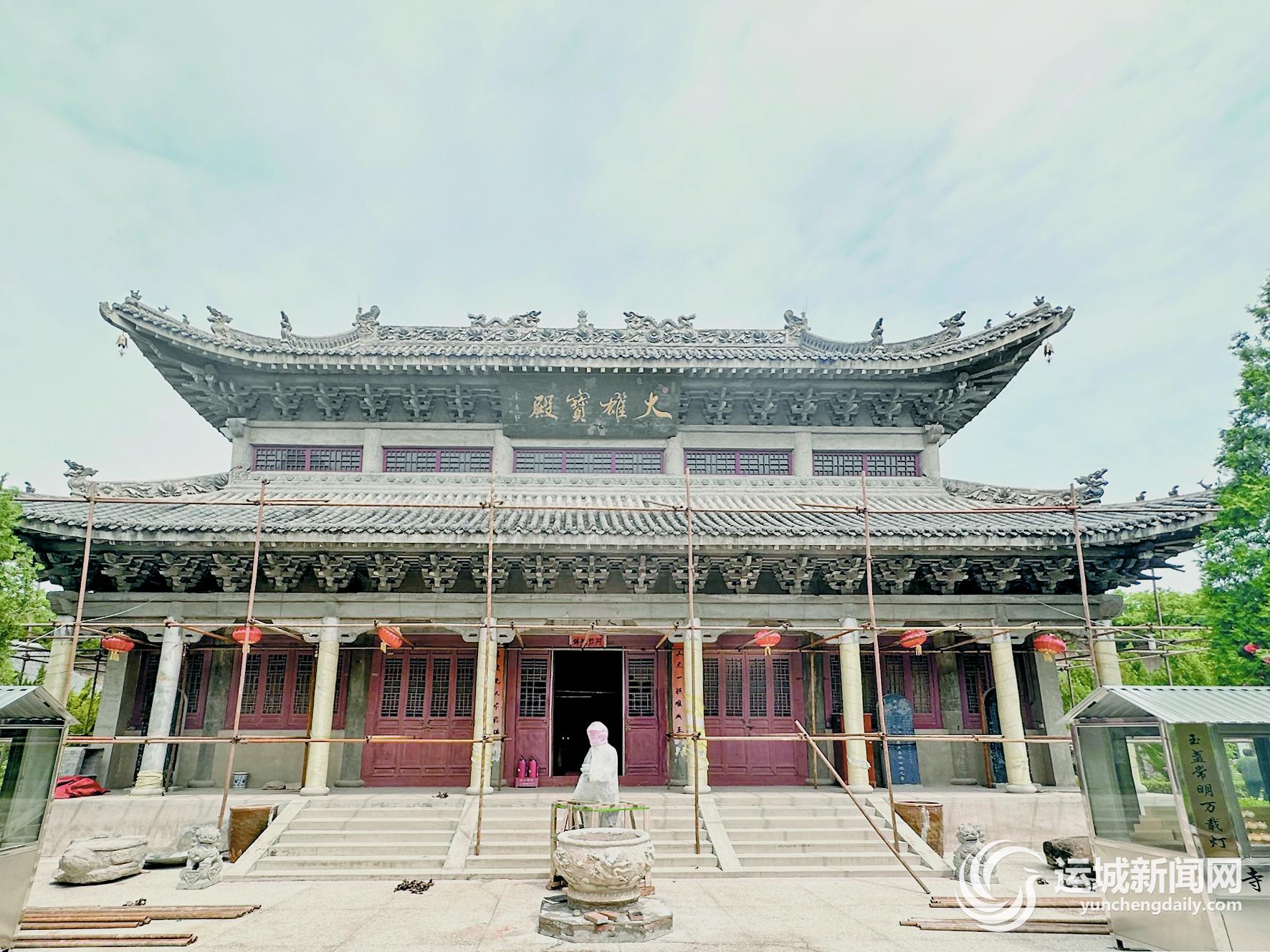 穿過山門,面前的大雄寶殿宏偉氣派,外面搭建了一圈鐵架,適逢夏縣文物部門聘請的湖北專家在對大殿進行彩繪。