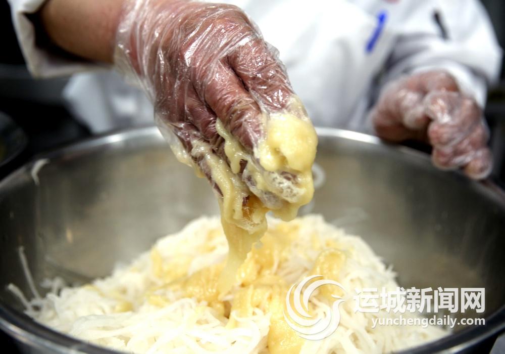 “這用的是咱運(yùn)城面粉,好吃又筋道。”主廚說(shuō),“這道美食主要就是吃面哩。”