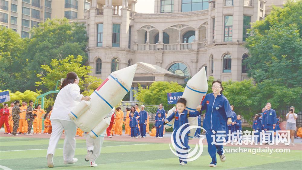 ▲5月20日,鹽湖區(qū)天億幼兒園舉行了“中國(guó)力量 騰飛翅膀”航天科技主題親子夏季運(yùn)動(dòng)會(huì)。孩子與家長(zhǎng)一起,通過(guò)自己的努力與堅(jiān)持,完成了載人火箭、遨游太空、星球大戰(zhàn)、太空漫步、返回地球等親子航天游戲。此次運(yùn)動(dòng)會(huì),讓孩子們?cè)谳p松愉快的氛圍中了解到了中國(guó)航天事業(yè)的快速發(fā)展,感受到了祖國(guó)的日益強(qiáng)大。