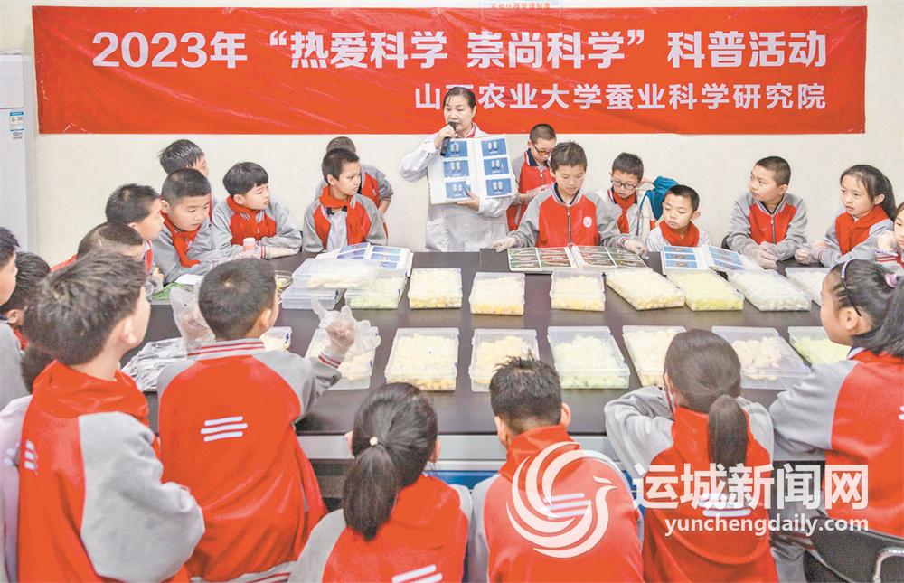 運城晚報訊(記者 茹雅)5月29日,山西農業大學蠶業科學研究院開啟了“熱愛科學 崇尚科學”科技周活動,并邀請夏縣裴介小學學生開展研學活動(上圖)。
