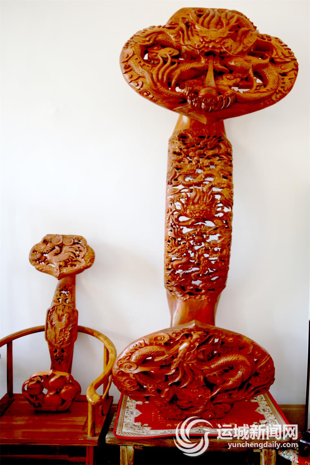 以桃木為原材料,運用雕、鏤、刻、鑲等技法,吸納民間信仰和道教文化等元素,創造出藝術精品,這就是芮城永樂桃木雕塑的獨特魅力。2014年,永樂桃木雕刻列入國家級非物質文化遺產名錄,而一直堅守這一傳承的就是芮城人李艷軍。
