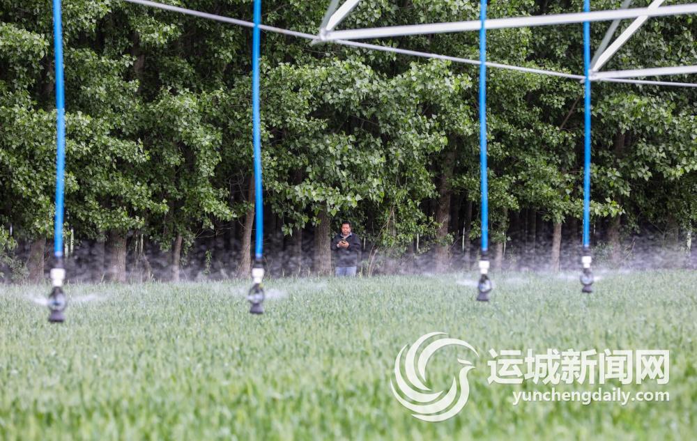 胡天妮在用手機遠程控制桁架式噴灌設備