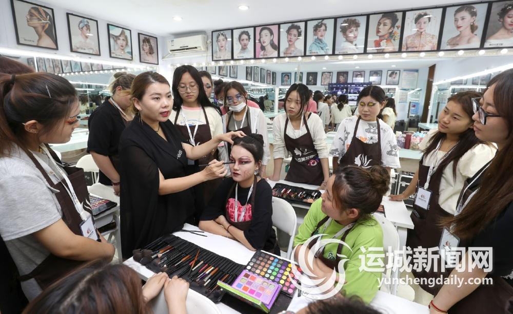 鹽湖區(qū)職業(yè)培訓(xùn)學(xué)校高級(jí)化妝師張景茹在實(shí)訓(xùn)課上,模擬不同客戶特點(diǎn)進(jìn)行個(gè)性化妝容造型點(diǎn)評。