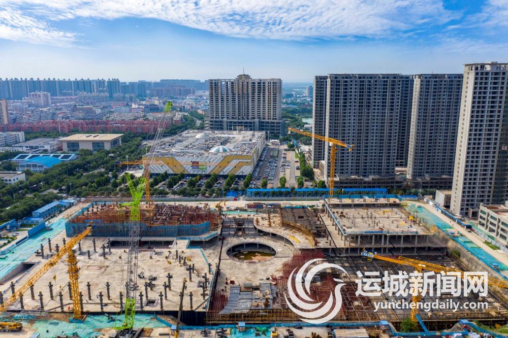 7月6日,運城市民服務中心項目建設現場塔吊林立,一派繁忙景象。