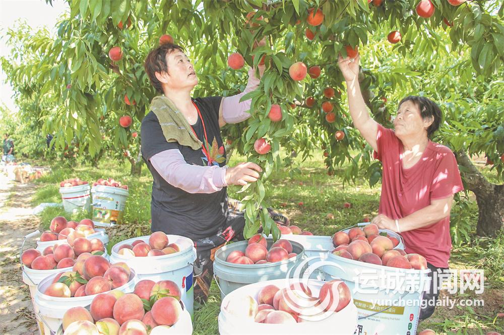 7月7日,聞喜縣陽隅鎮回坑村果農在果園采摘水蜜桃,準備銷往北京、江蘇等地。