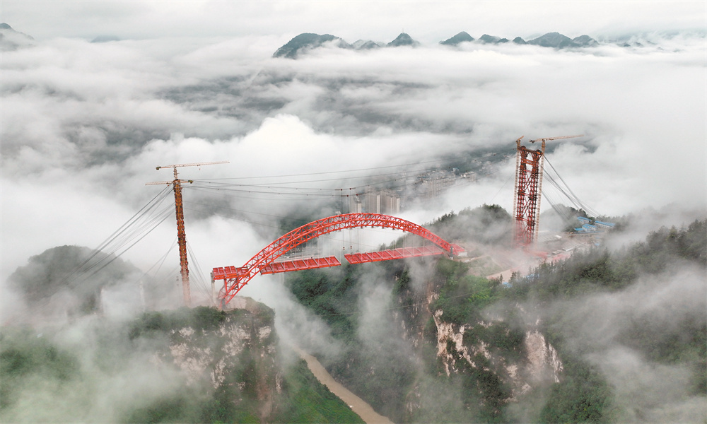 目前,位于湖北省恩施土家族苗族自治州鶴峰縣境內(nèi)的溇水河特大橋鋼梁吊裝即將完成。溇水河特大橋是宜(都)來(lái)(鳳)高速公路鶴峰東段的控制性工程。大橋全長(zhǎng)328米,橫跨深度300多米的峽谷。新華社發(fā)(楊順丕 攝)