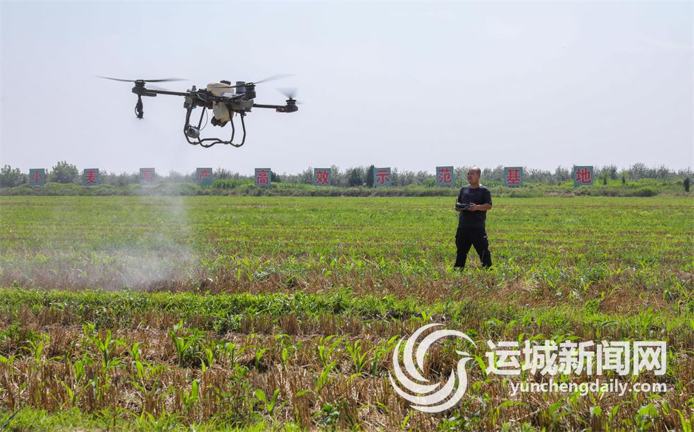 臨猗縣武屆家庭農場內,武屆在進行無人機植保作業。