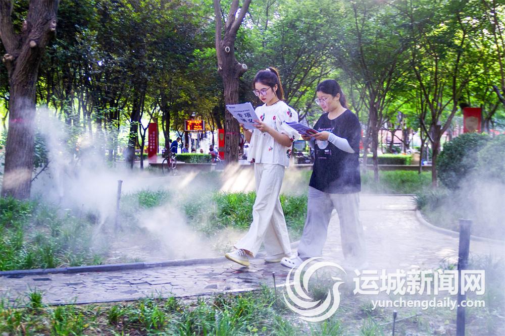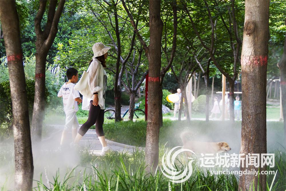炎炎夏日,中心城區街頭的綠化帶和小游園在灌溉造霧系統啟動運行后處處“仙氣飄飄”,市民紛紛走進游園納涼避暑,享受夏日的清涼。