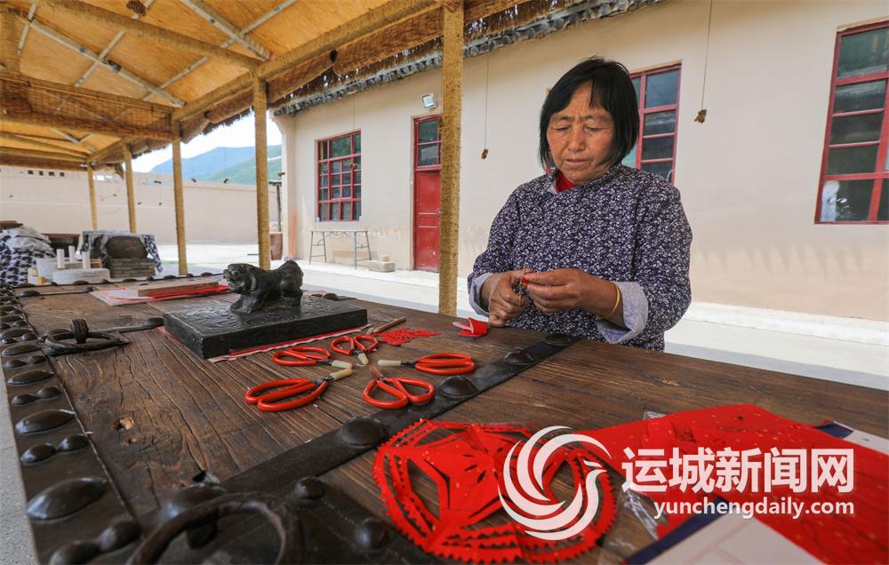 馬家溝村農耕文化體驗基地的工作人員在準備剪紙小樣