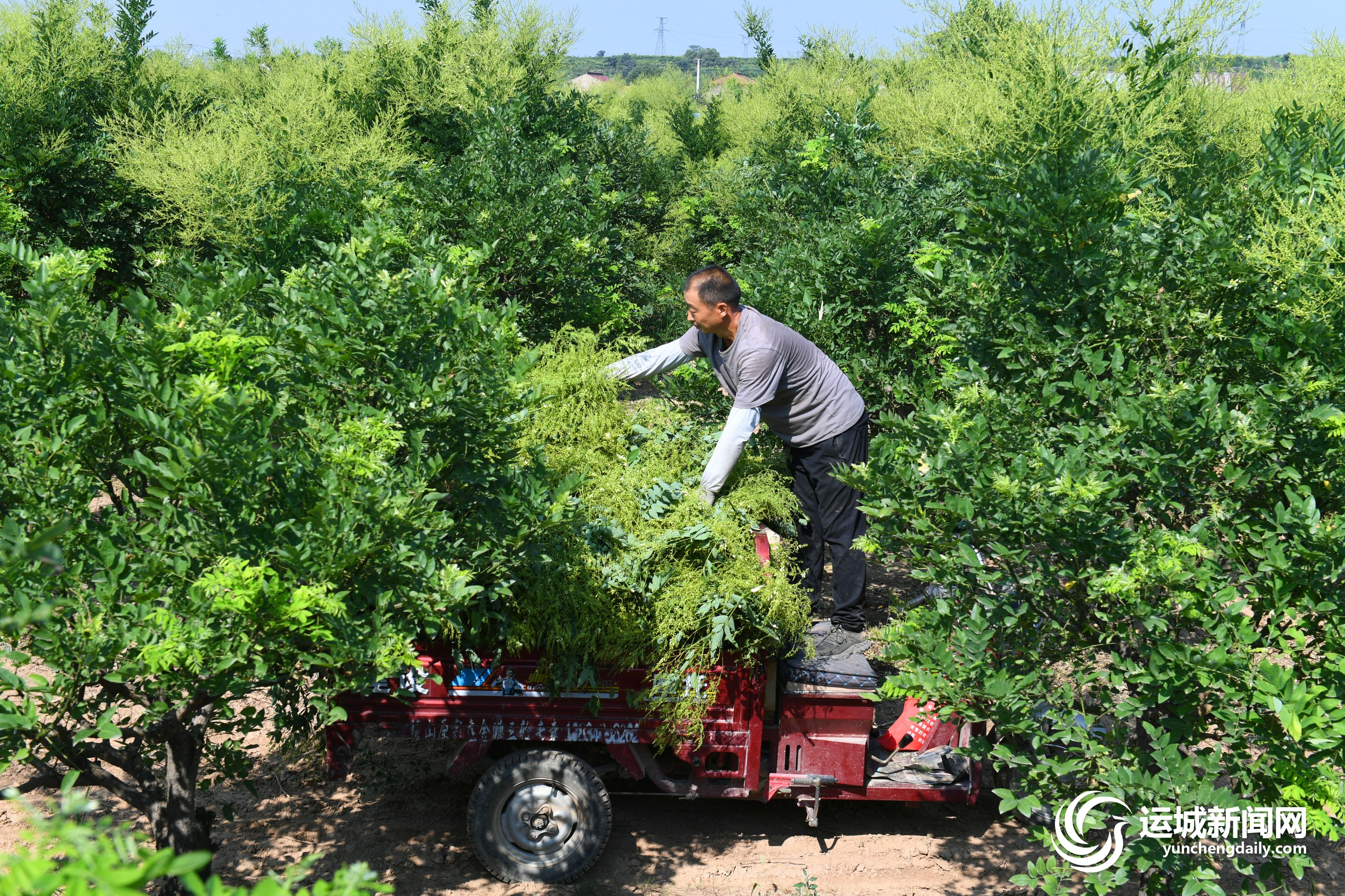 稷山縣稷峰鎮上廉村村民在田間采收槐米。近年來,我市大力發展雙季槐產業,既實現了生態效益,又增加了農民收入。