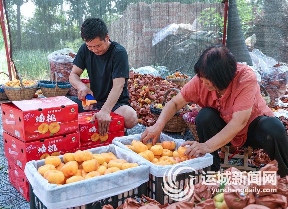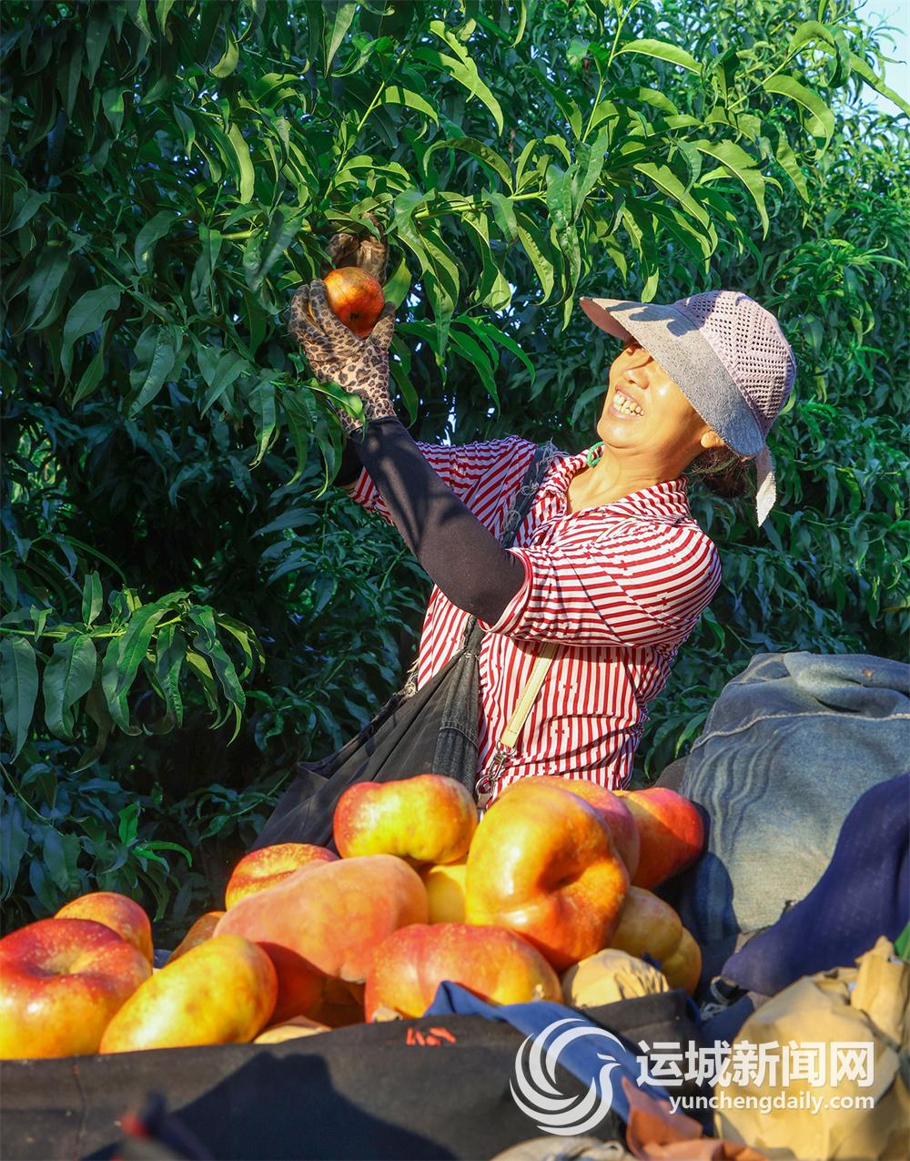 8月2日,在萬(wàn)榮縣里望鄉(xiāng)上井村咱家家庭農(nóng)場(chǎng)楊迪祥的蟠桃園里,村民在采摘蟠桃,并將新鮮果實(shí)第一時(shí)間分揀、裝箱,發(fā)往市場(chǎng)。