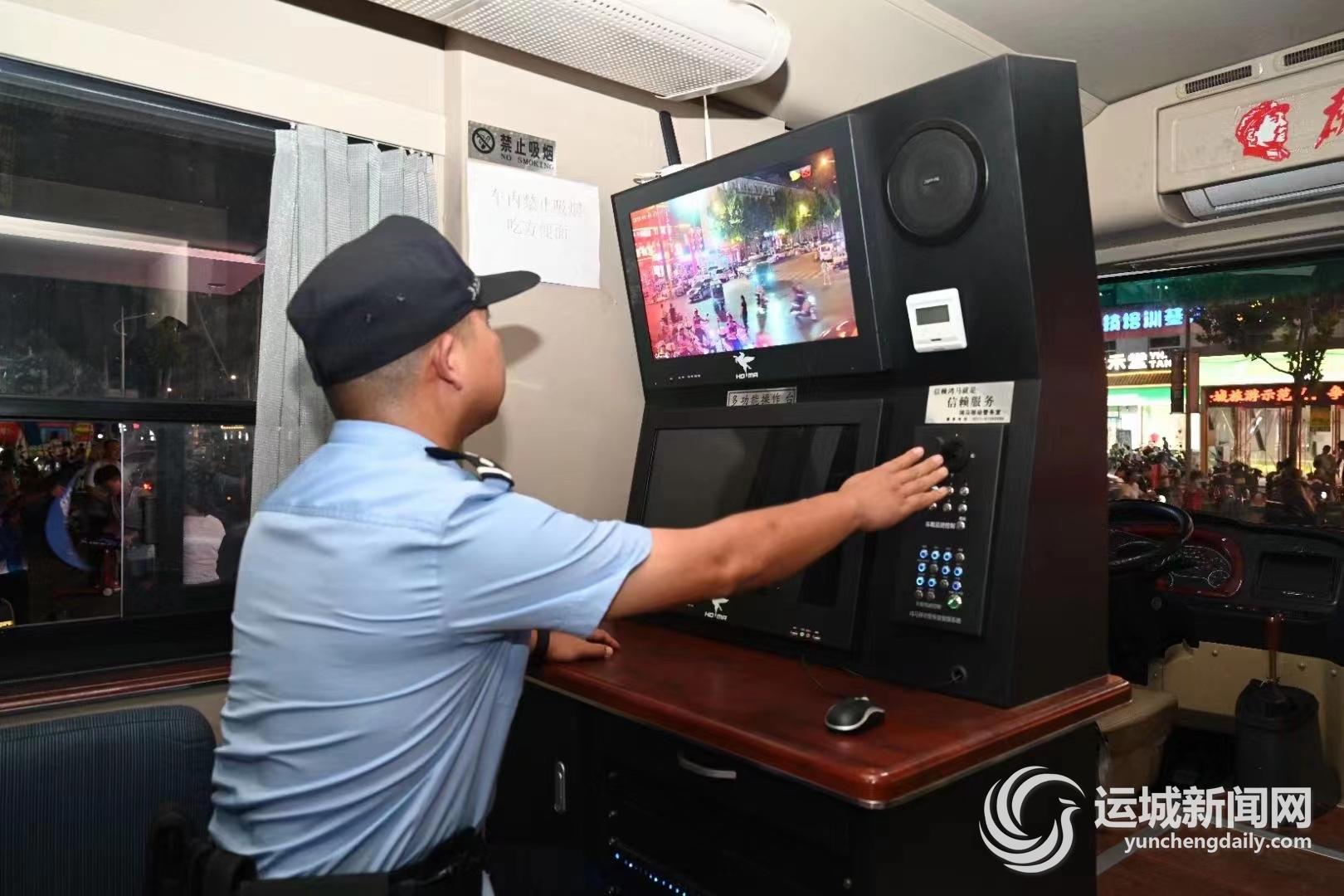 從華燈初上到夜色闌珊,芮城公安移動警務車一直駐守在街頭,讓群眾感受到平安始終在身邊。