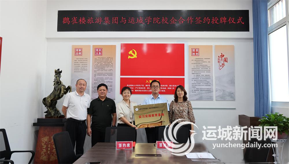 8月14日,山西鸛雀樓旅游集團有限公司和運城學院開展的校企合作簽約授牌儀式在鸛雀樓景區舉行。永濟市組織部、永濟市文旅局、運城學院文化旅游系、山西鸛雀樓旅游集團有限公司等相關負責人出席簽約儀式。