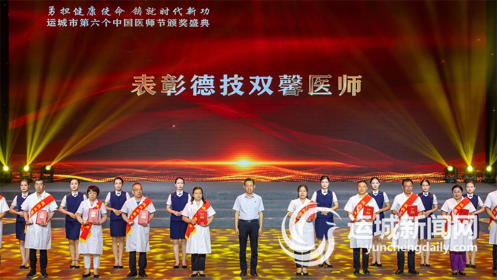 運(yùn)城晚報(bào)訊(記者 陶登肖)勇?lián)】凳姑T就時(shí)代新功。在“中國(guó)醫(yī)師節(jié)”來(lái)臨之際,8月18日晚,由運(yùn)城市衛(wèi)生健康委員會(huì)主辦的運(yùn)城市第六個(gè)中國(guó)醫(yī)師節(jié)頒獎(jiǎng)盛典在運(yùn)城市廣播電視臺(tái)演播大廳成功舉辦。大會(huì)隆重表彰“德技雙馨醫(yī)師”“優(yōu)秀青年醫(yī)師”“優(yōu)秀醫(yī)技工作者”“最美護(hù)士”“最美健康衛(wèi)士”“最美鄉(xiāng)村醫(yī)生”“醫(yī)療技術(shù)創(chuàng)新團(tuán)體”等先進(jìn)代表,激勵(lì)全市廣大醫(yī)務(wù)工作者踔厲奮發(fā)、勇毅前行,為我市醫(yī)療衛(wèi)生健康事業(yè)作出更大貢獻(xiàn)。