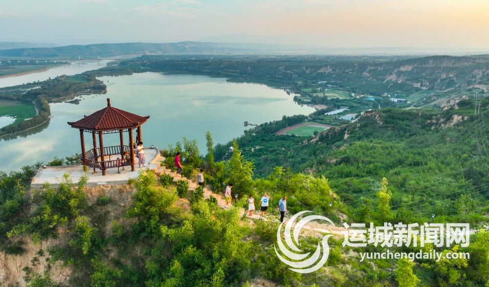 8月19日,游客在芮城縣陌南鎮莊上村的明易亭觀景平臺上賞景。