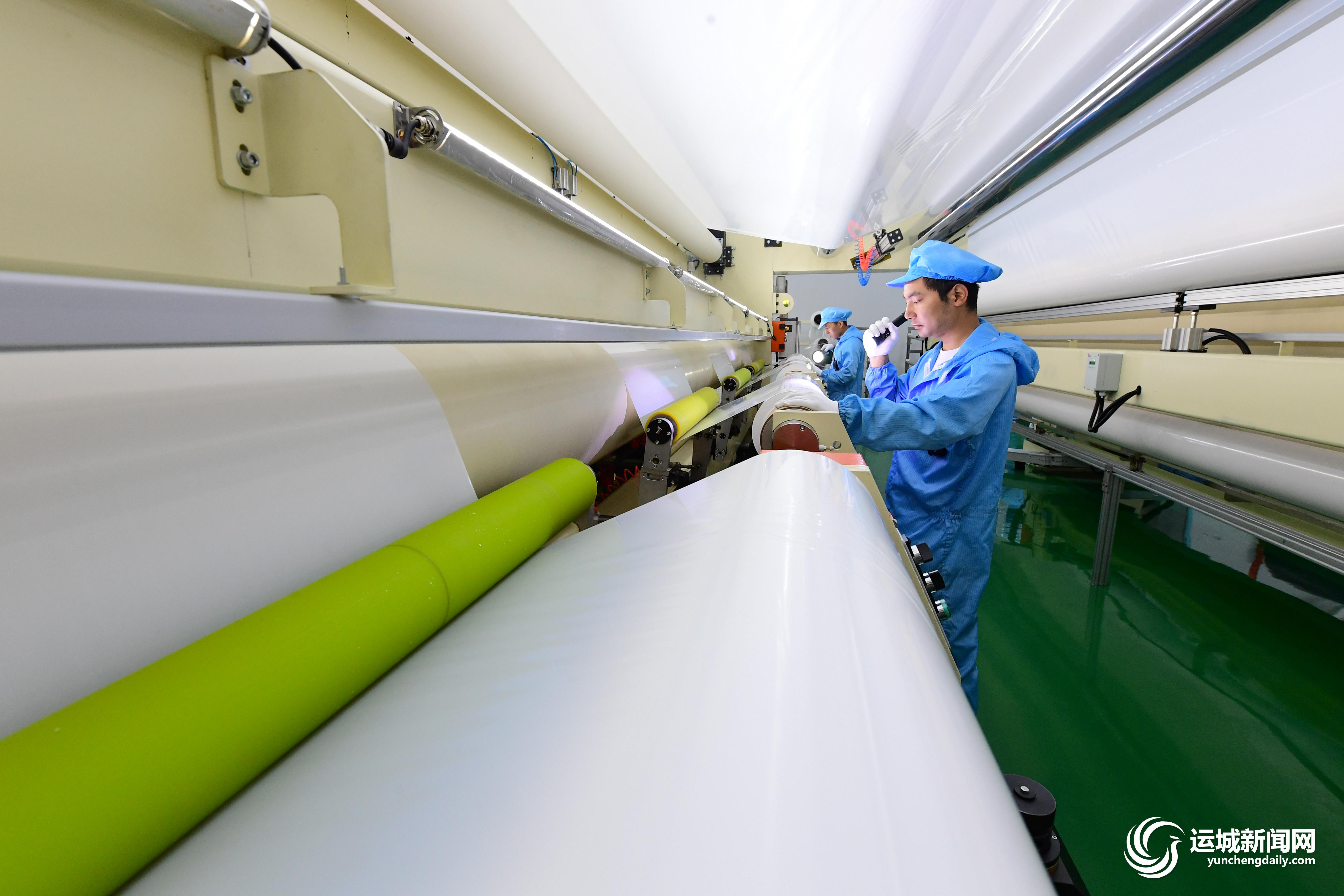 8月28日,在永濟市藍科途鋰電池隔膜生產車間,工作人員正在對產品進行檢驗。
