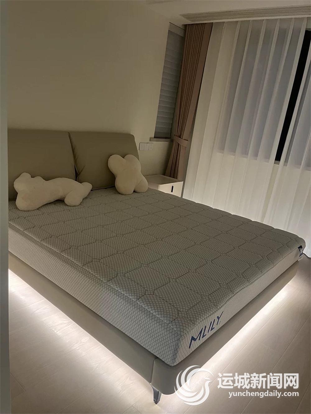 李經(jīng)理提示,選床加燈帶,那地板最好是啞光的,光反射會(huì)柔和許多。此外,如果沒有每天掃地的習(xí)慣,建議還是別加燈帶,因?yàn)闊艄鈺?huì)將地上的灰塵照得“無(wú)處遁形”。