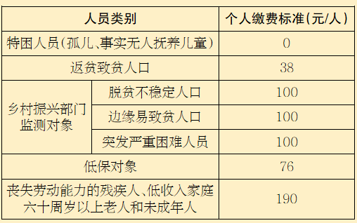困難人群個人繳費標準