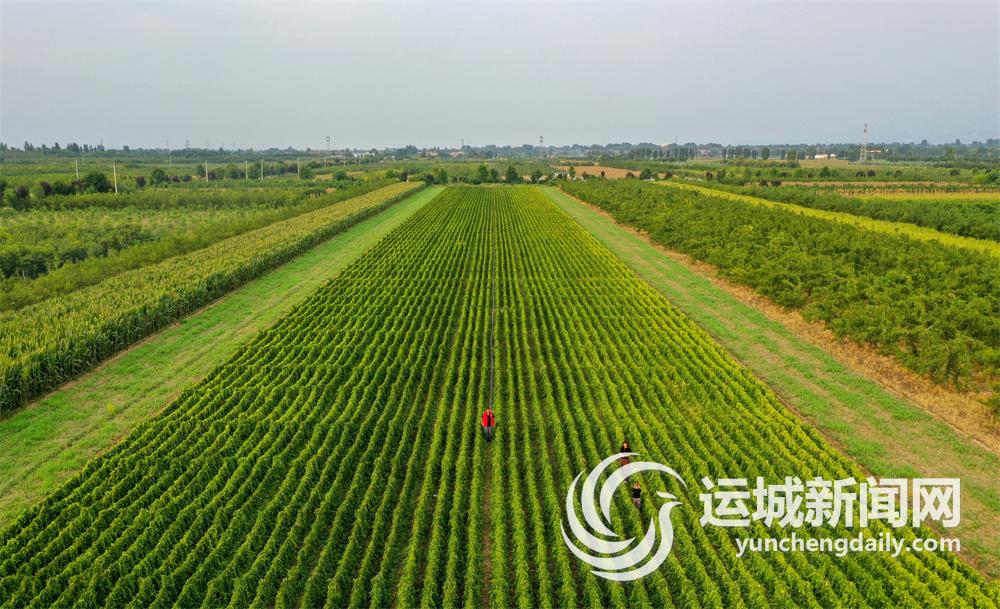 9月10日,夏縣裴介鎮(zhèn)魯因村億谷多家庭農(nóng)場員工在山藥田里管理山藥。