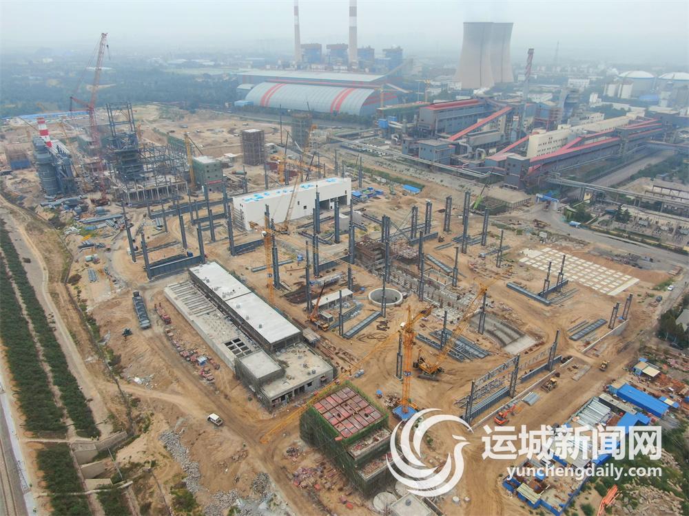 山西華鑫源鋼鐵集團有限公司減量置換升級改造項目是運城市“1311”重大工程項目。該項目核心1300立方米高爐項目爐殼于日前封頂,進入設備安裝階段。圖為項目施工現場。