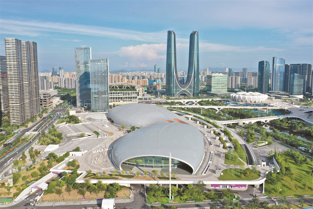 這是無(wú)人機(jī)拍攝的杭州奧體中心游泳館、體育館。