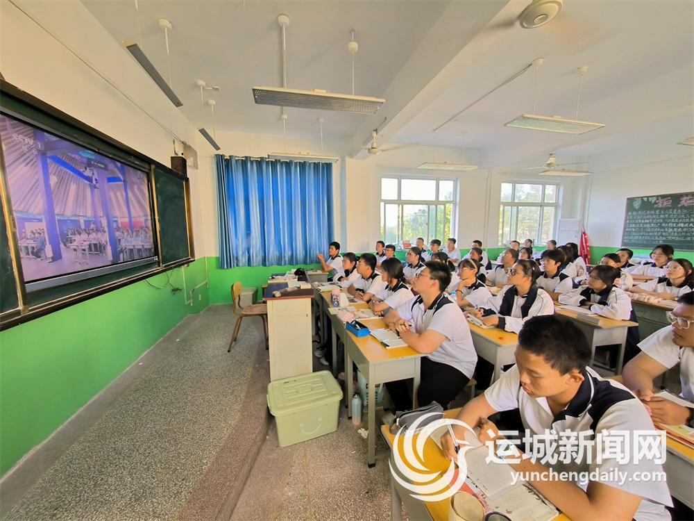 在英雄航天員景海鵬的母校——鹽湖區解州中學,當日全體師生集體收看了“天宮課堂”,一睹海鵬學長的風采。