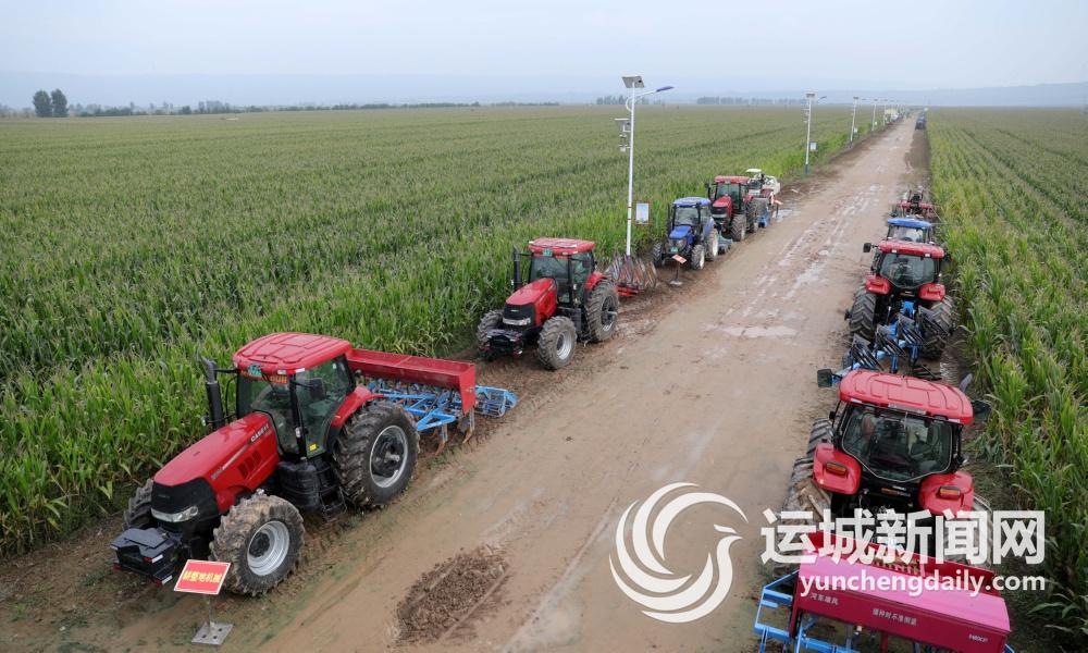 在黃汾百萬畝糧食優質高產高效示范芮城基地,農機整齊排列。 本報記者 金玉敏 攝