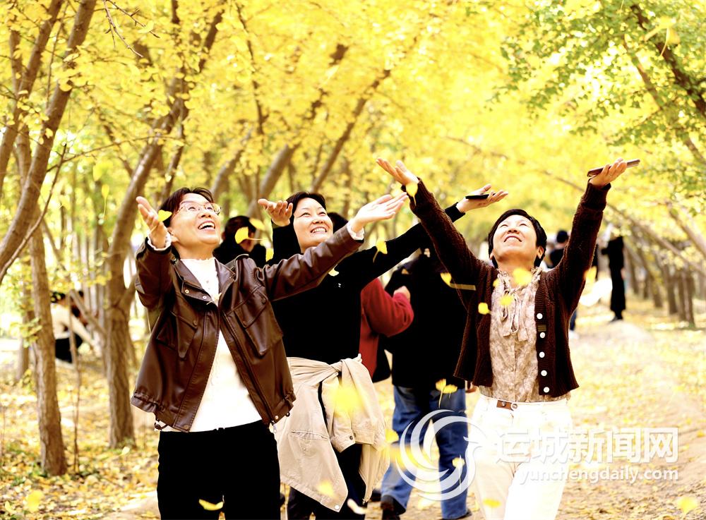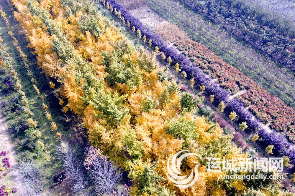 秋日的河?xùn)|色彩斑斕,這從臨猗縣三管鎮(zhèn)的百畝銀杏源便可見一斑。